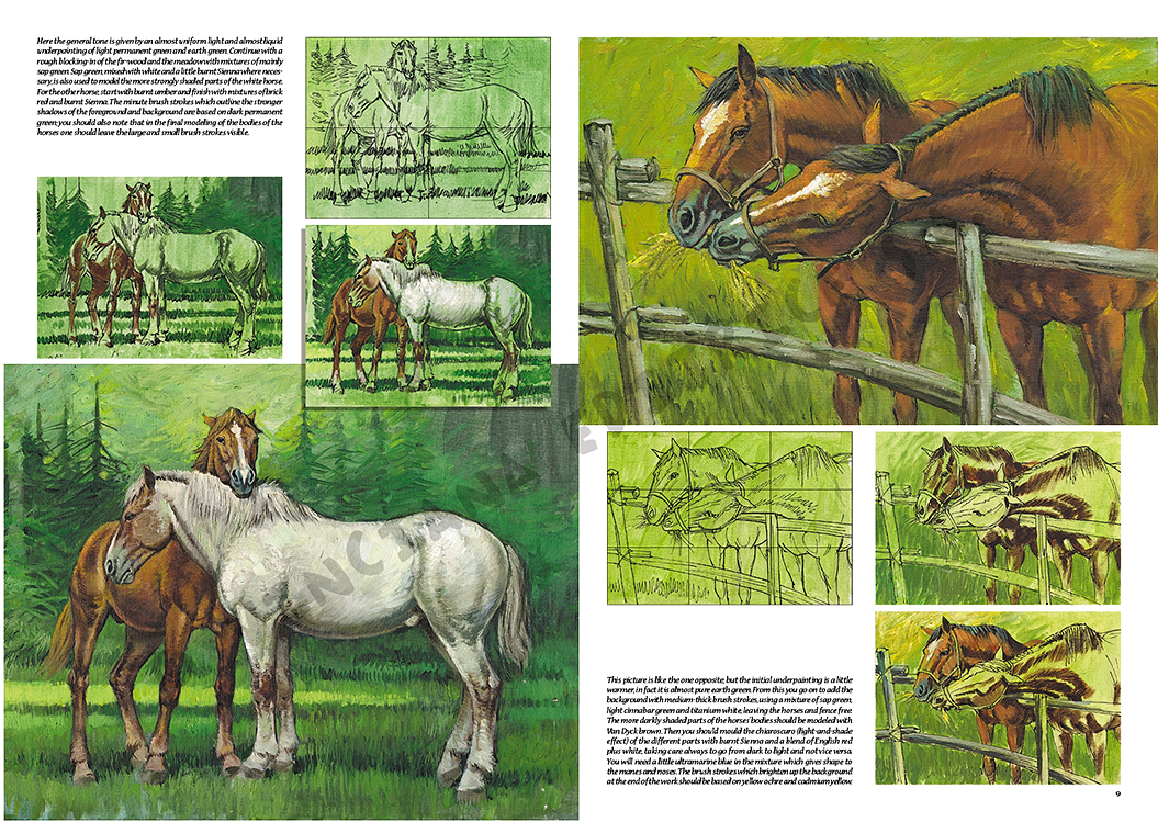 Varios temas ecuestres realizados con diferentes técnicas y un pequeño compendio de anatomía, indispensable para quien se acerca a la representación de este noble animal.