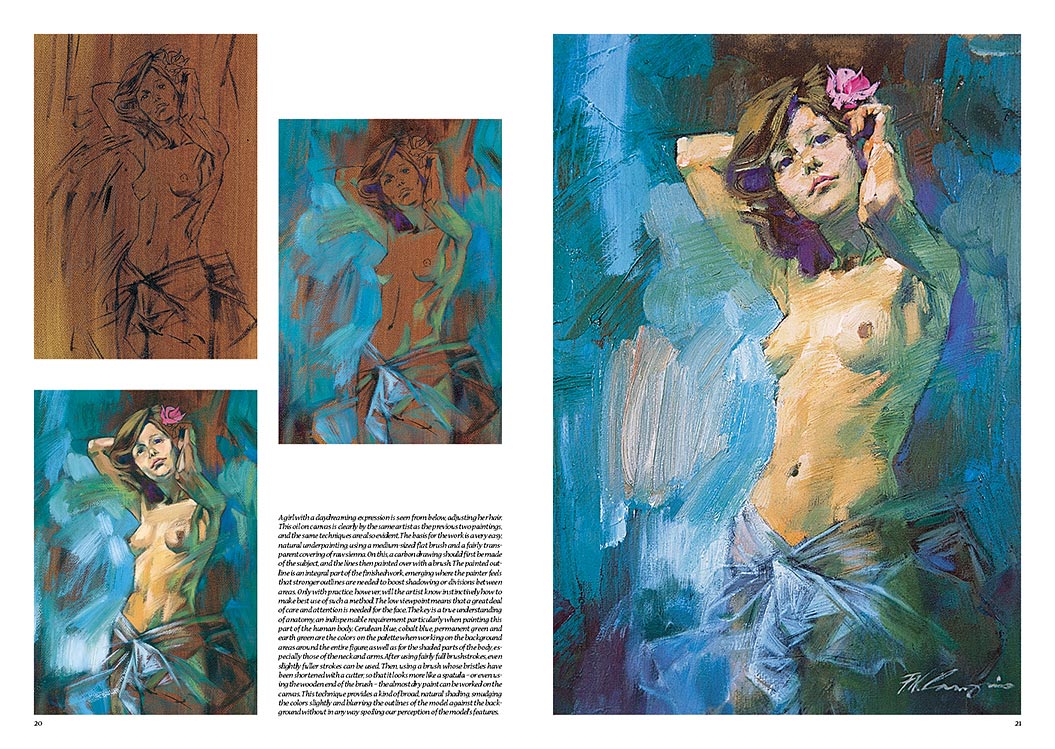 • Un volumen enteramente dedicado al desnudo pintado al óleo en las páginas donde se trata el color, y en la sección del blanco y negro encontramos una selección de dibujos realizados a lápiz y carboncillo.