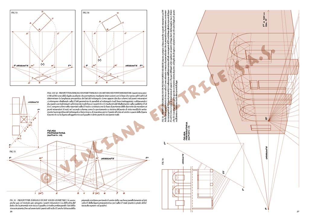 Introduzione alla prospettiva con esemplificazioni di facile comprensione. Cenni sulla teoria delle ombre con disegni esplicativi.
